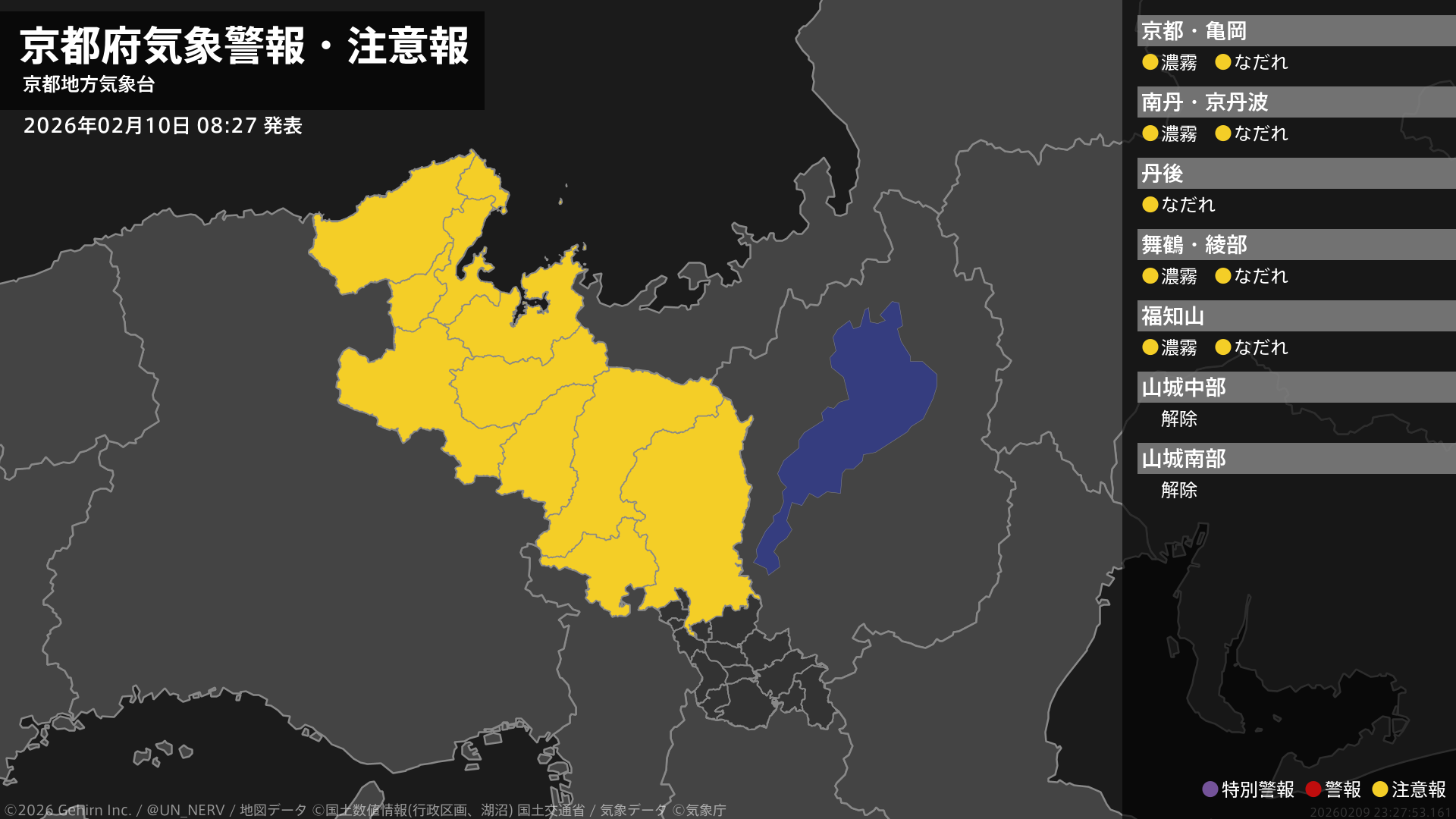 【京都府 気象警報・注意報 2026年02月10日 08:27】