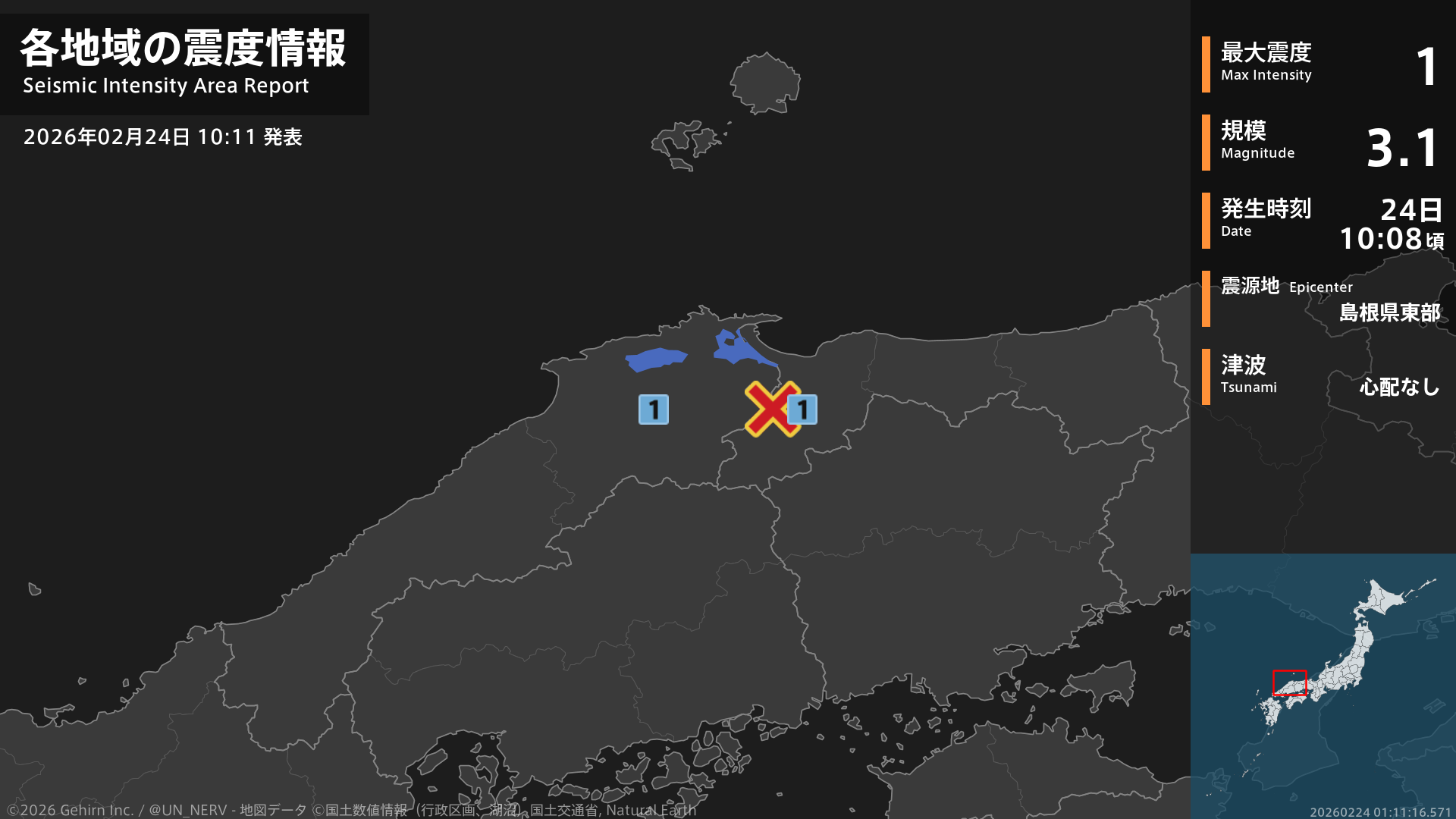 【地震情報 2026年2月24日】