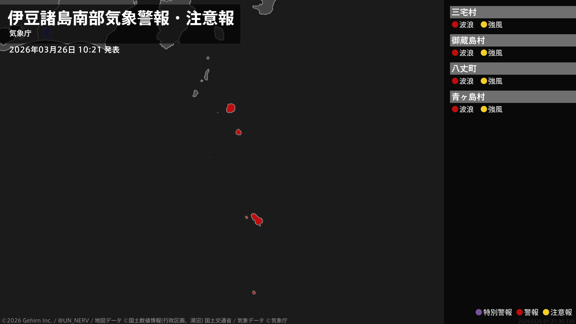 【東京都 気象警報・注意報 2026年03月26日 10:21】