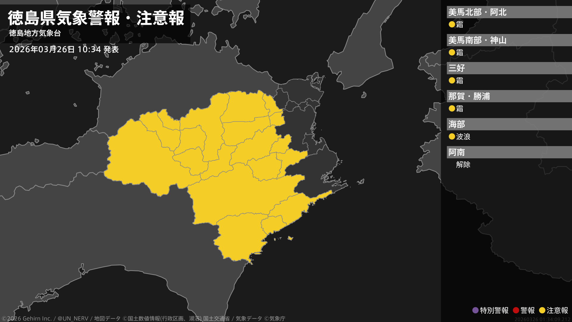 【徳島県 気象警報・注意報 2026年03月26日 10:34】