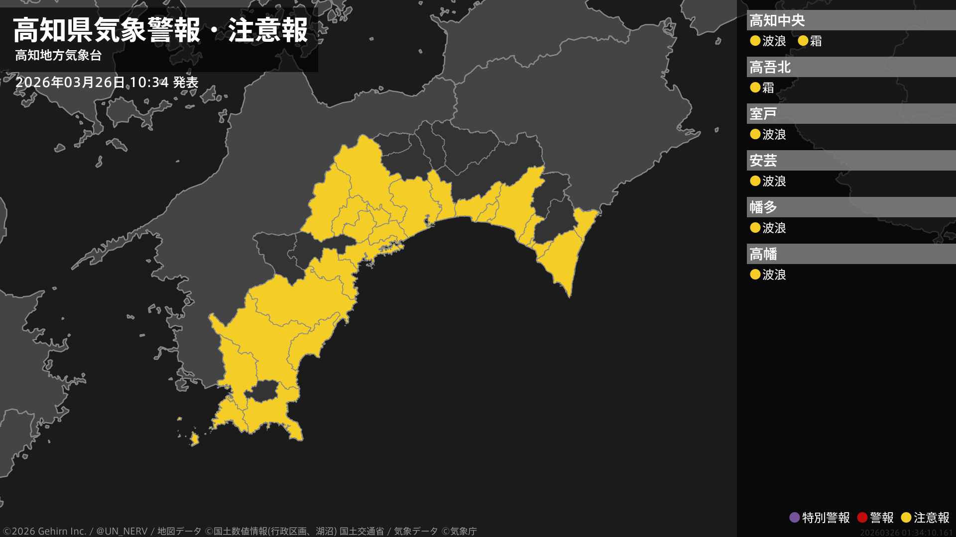 【高知県 気象警報・注意報 2026年03月26日 10:34】