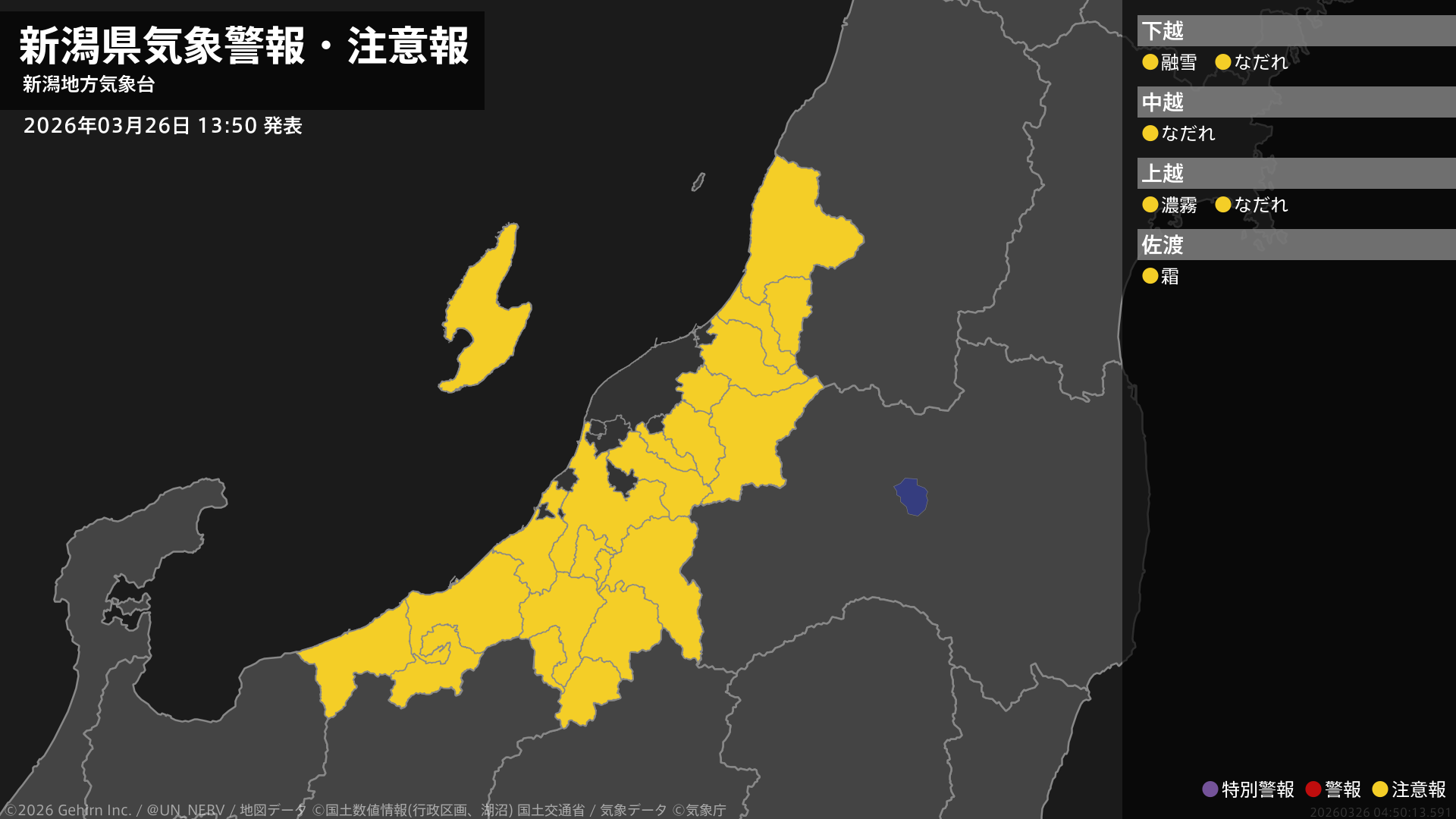 【新潟県 気象警報・注意報 2026年03月26日 13:50】