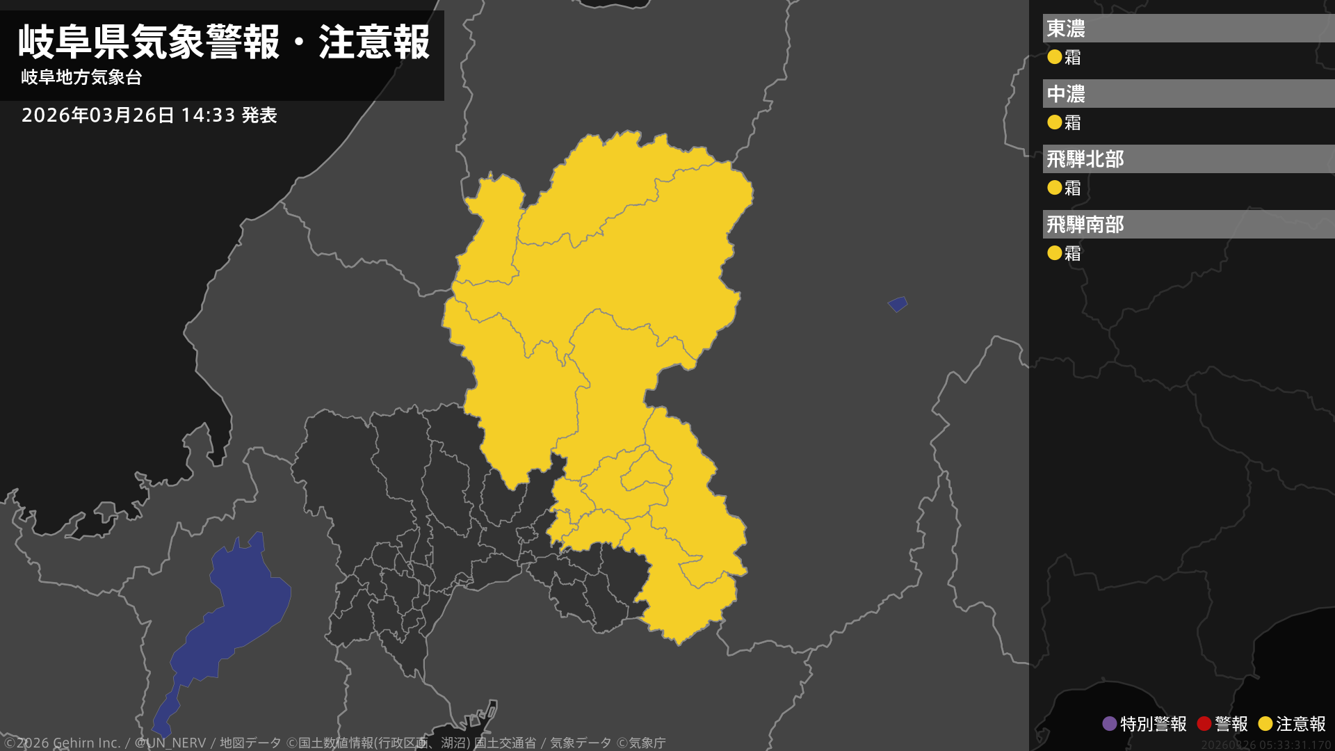 【岐阜県 気象警報・注意報 2026年03月26日 14:33】