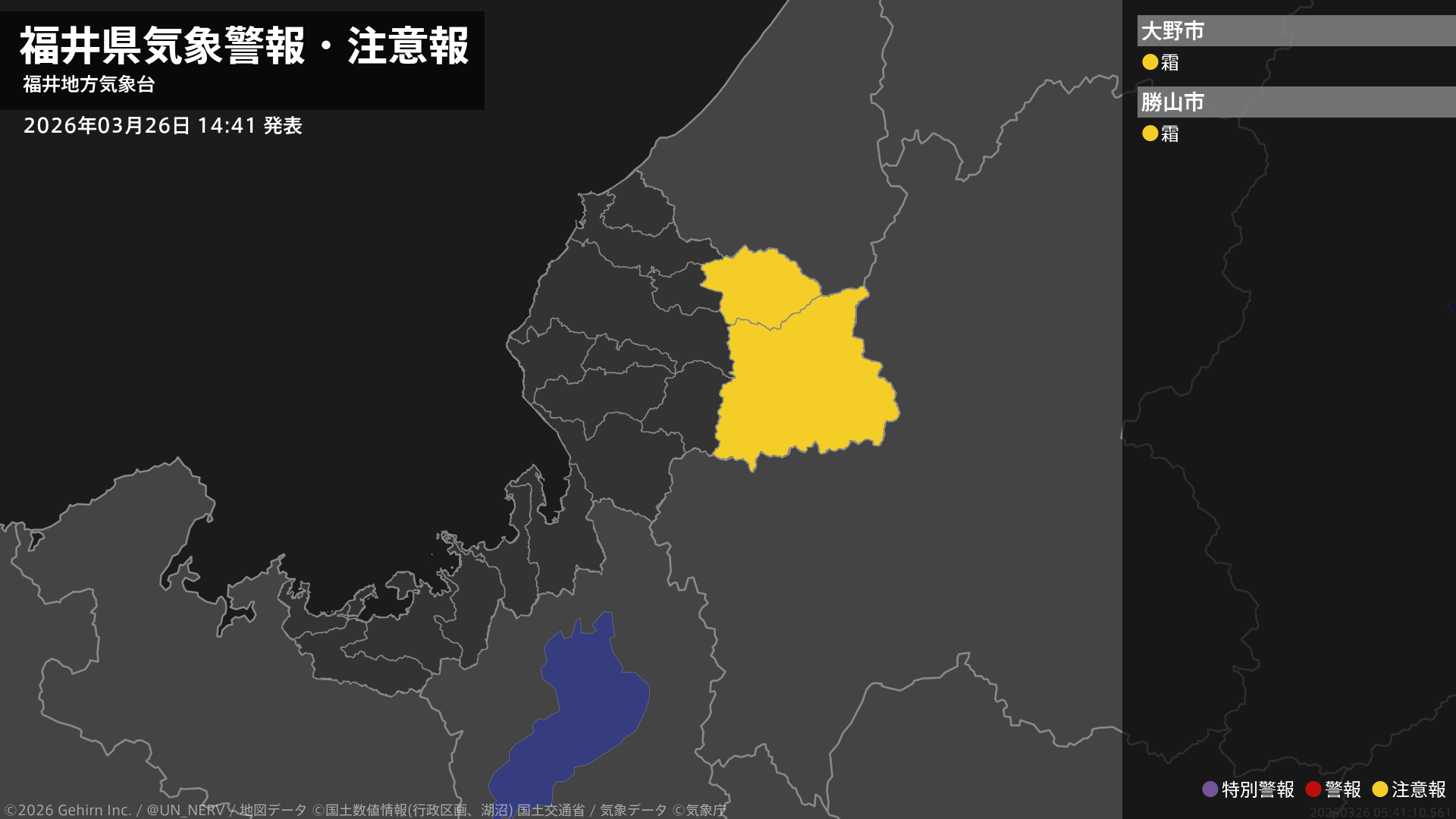 【福井県 気象警報・注意報 2026年03月26日 14:41】