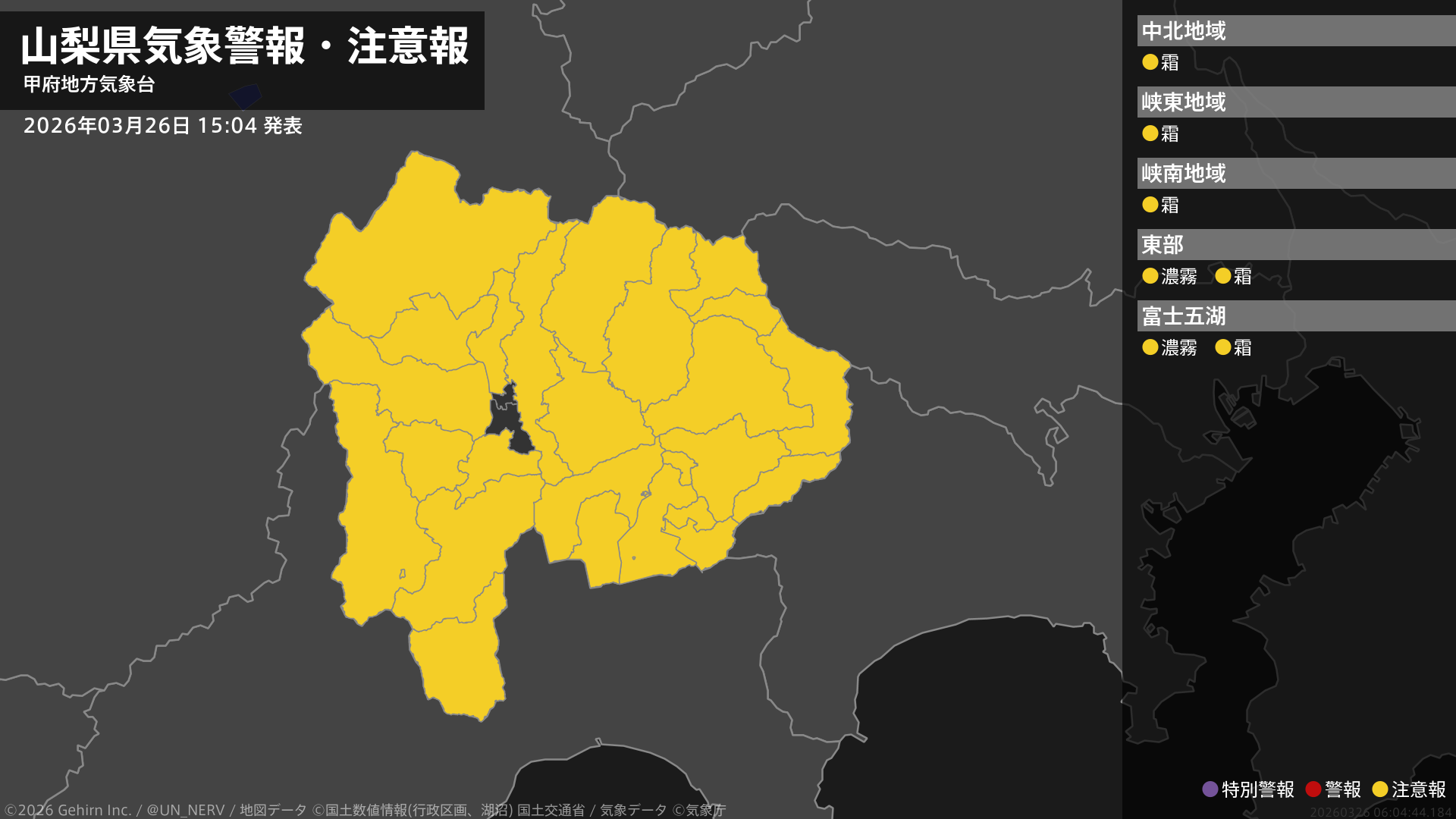 【山梨県 気象警報・注意報 2026年03月26日 15:04】