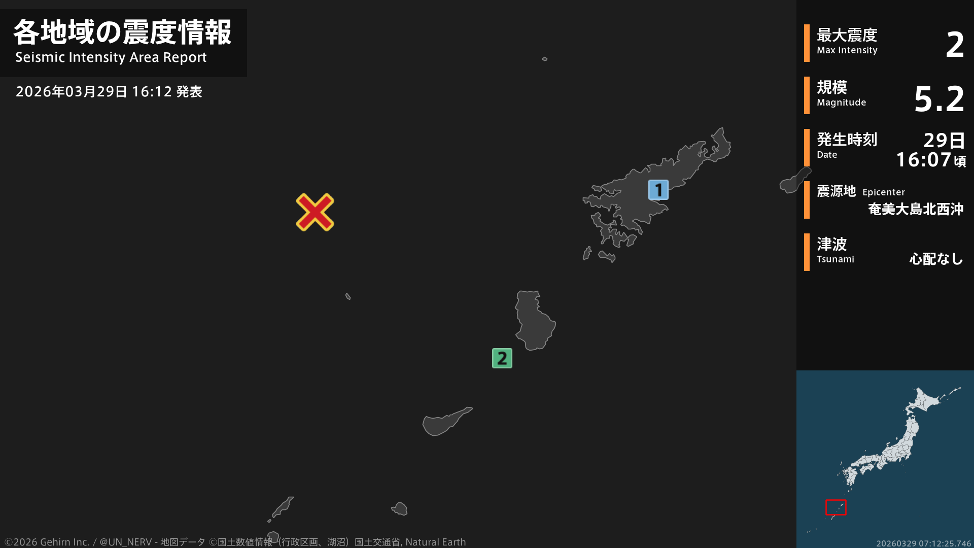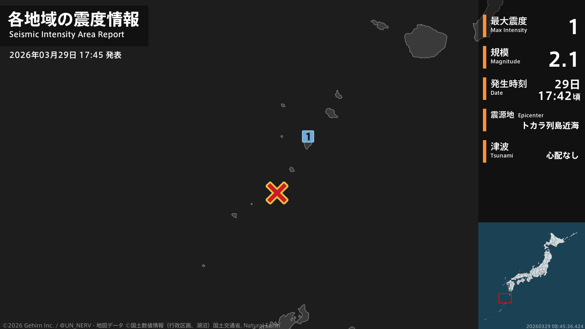 【緊急地震速報 第1報 2026年3月29日】