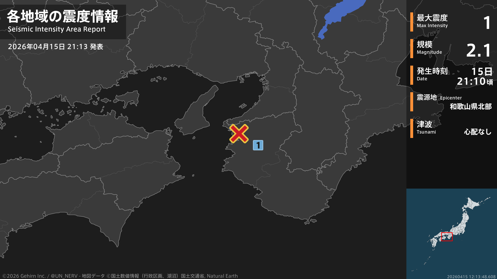【地震情報 2026年4月17日】21時30分頃、富山県東部を震源とする地震がありました。震源の深さはごく浅い、地震の規模はM3.0、最大震度1を岐阜県で観測しています。この地震による津波の心配はありません。#地震 #岐阜県