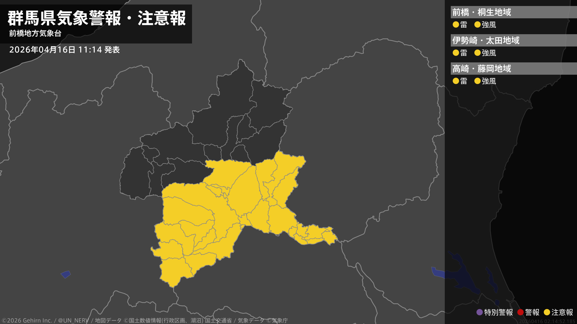 【群馬県 気象警報・注意報 2026年04月16日 16:23】群馬県では、17日未明から17日昼前まで濃霧による視程障害に注意してください。北部では、17日朝は霜に対する農作物の管理に注意してください。#気象警報注意報 #群馬県