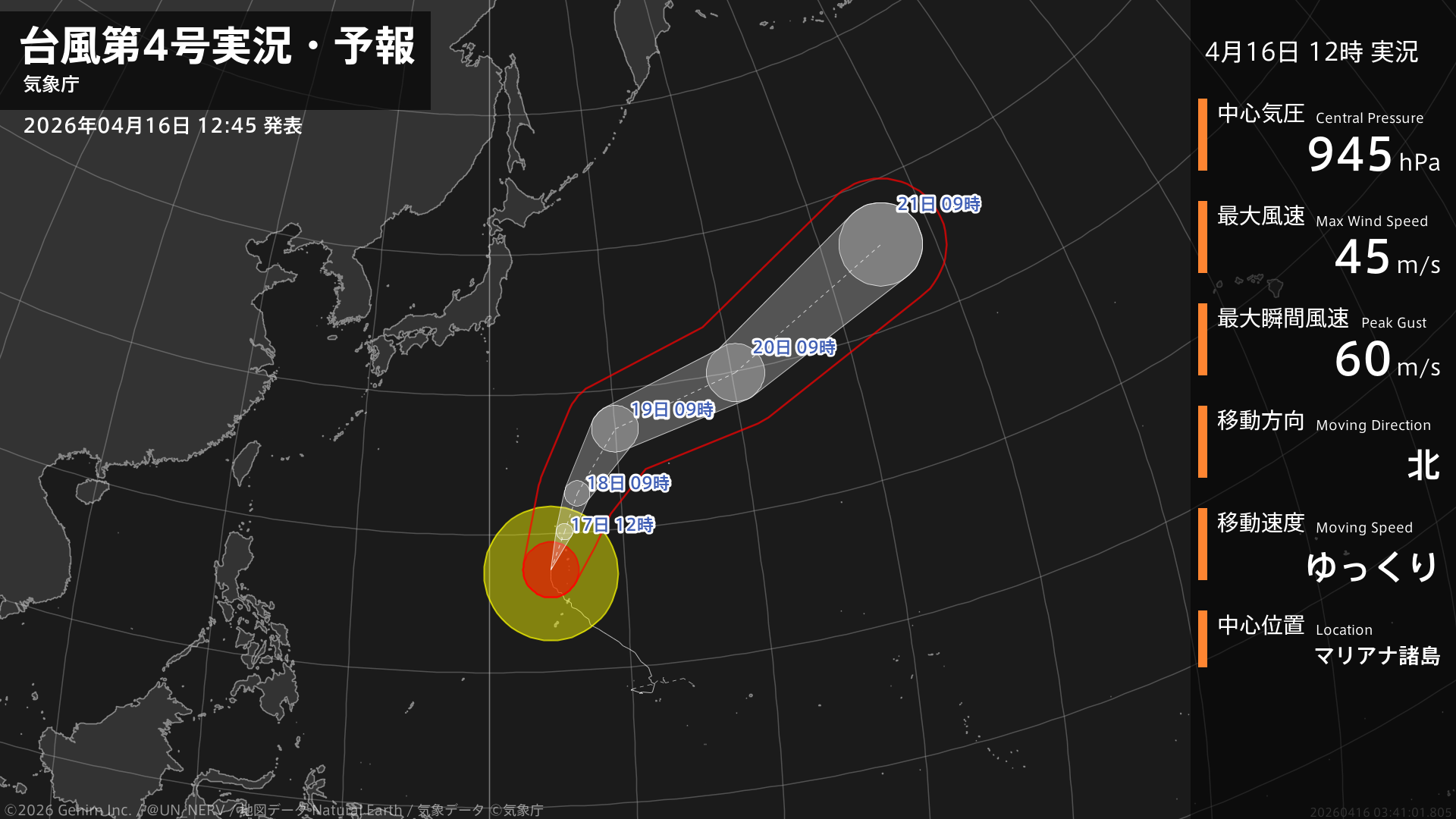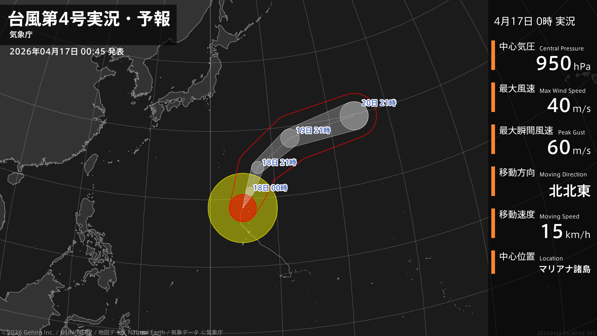 【東京都(小笠原諸島) 気象情報 2026年04月16日 16:39】小笠原諸島では、17日昼過ぎから18日にかけて、うねりを伴った高波に警戒してください。#気象情報 #東京都(小笠原諸島)