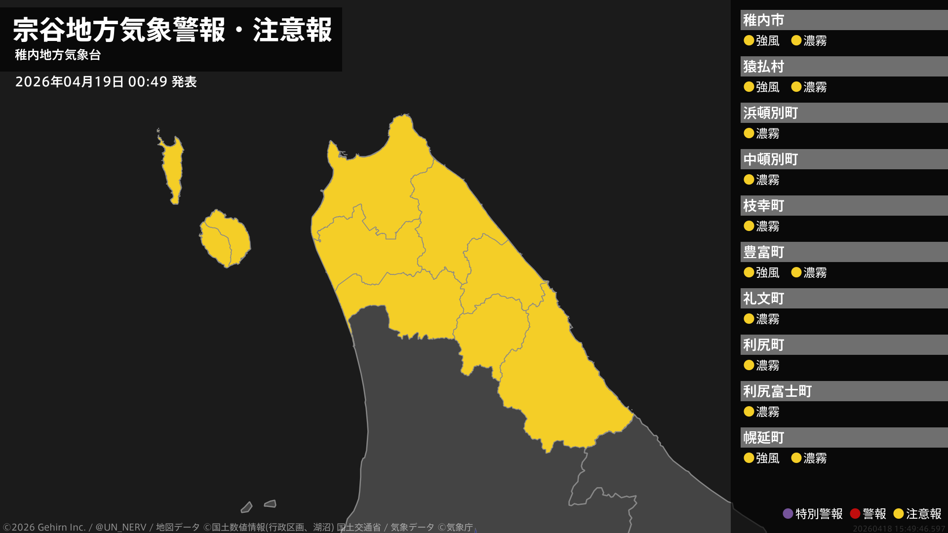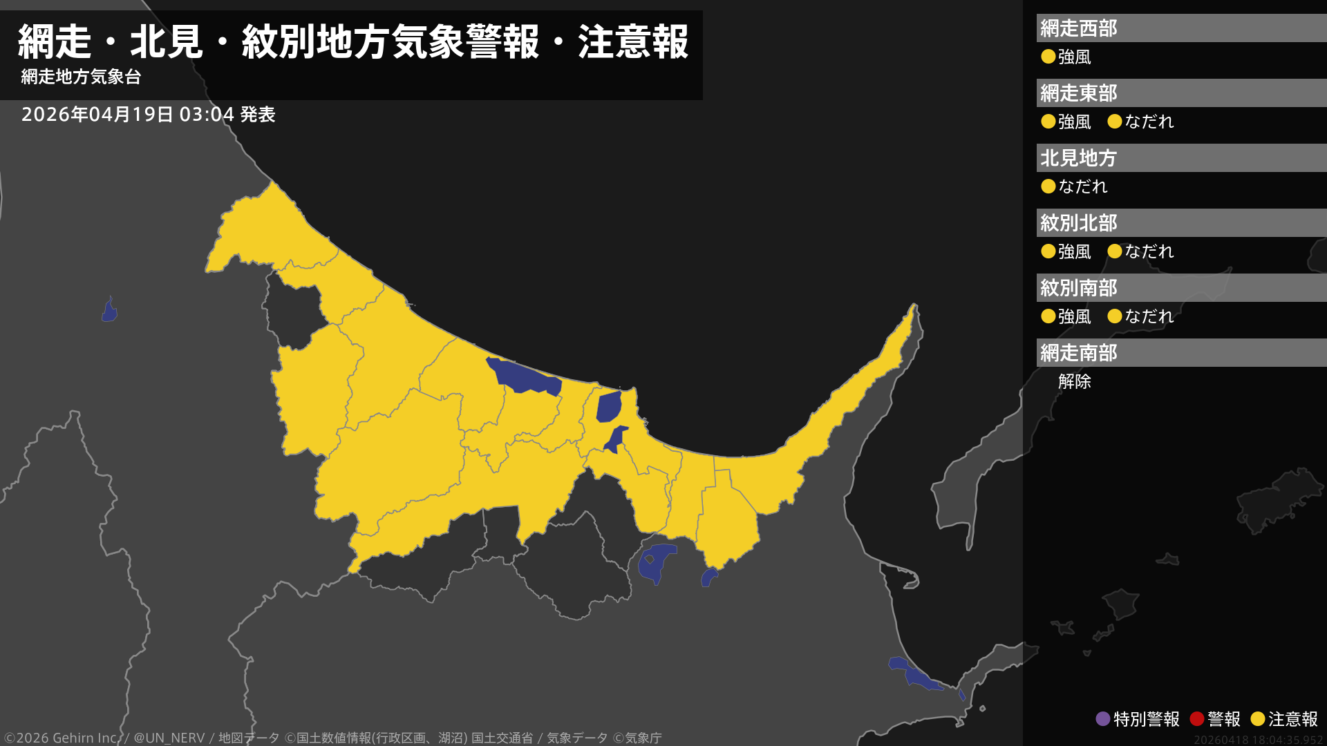 【宗谷地方 気象警報・注意報 2026年04月17日 20:53】注意報を解除します。#気象警報注意報 #宗谷地方