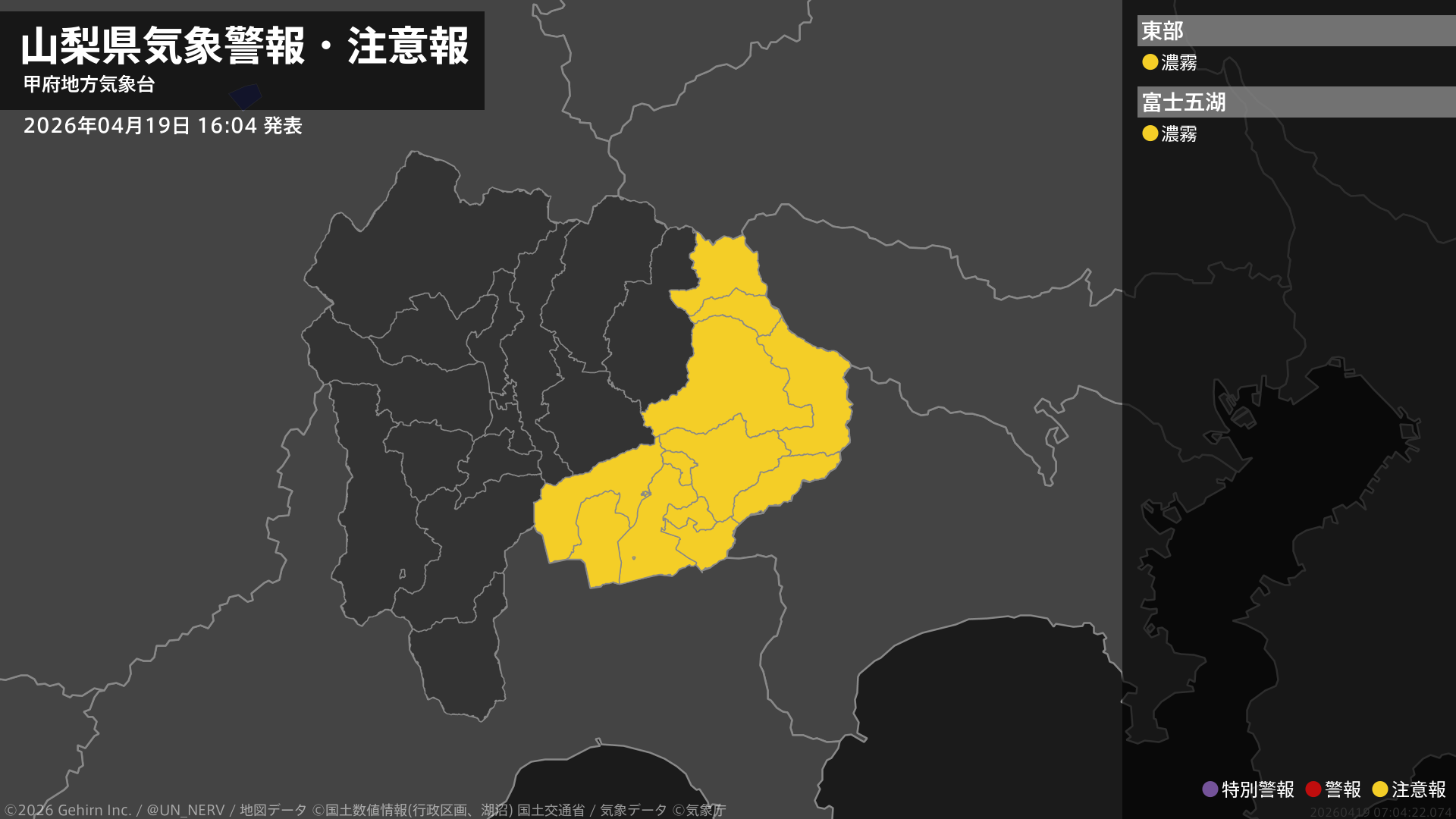 【網走・北見・紋別地方 気象警報・注意報 2026年04月20日 04:53】網走、北見、紋別地方では、20日昼前まで濃霧による視程障害に、21日までなだれに注意してください。#気象警報注意報 #網走・北見・紋別地方