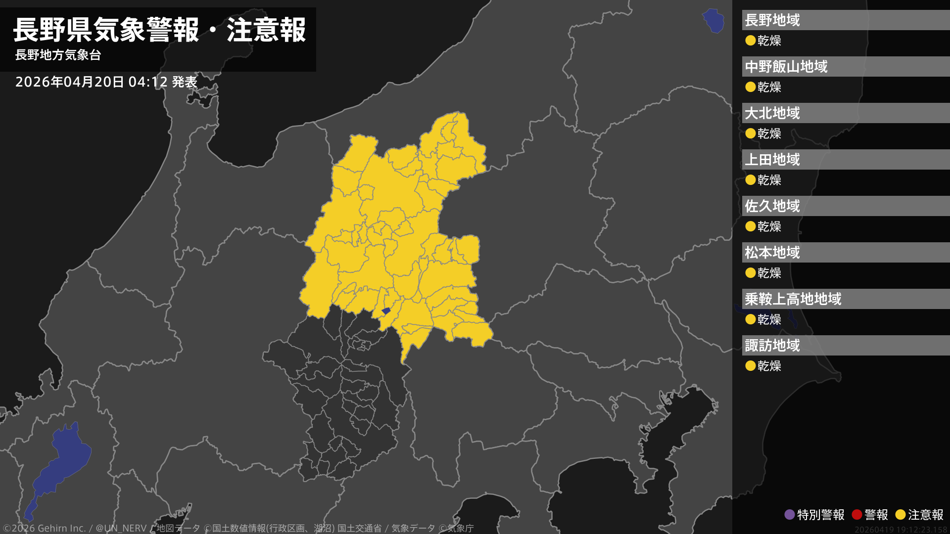 【栃木県 気象警報・注意報 2026年04月19日 16:04】栃木県では、19日夜遅くから20日昼前まで濃霧による視程障害に、19日まで空気の乾燥した状態が続くため、火の取り扱いに注意してください。#気象警報注意報 #栃木県