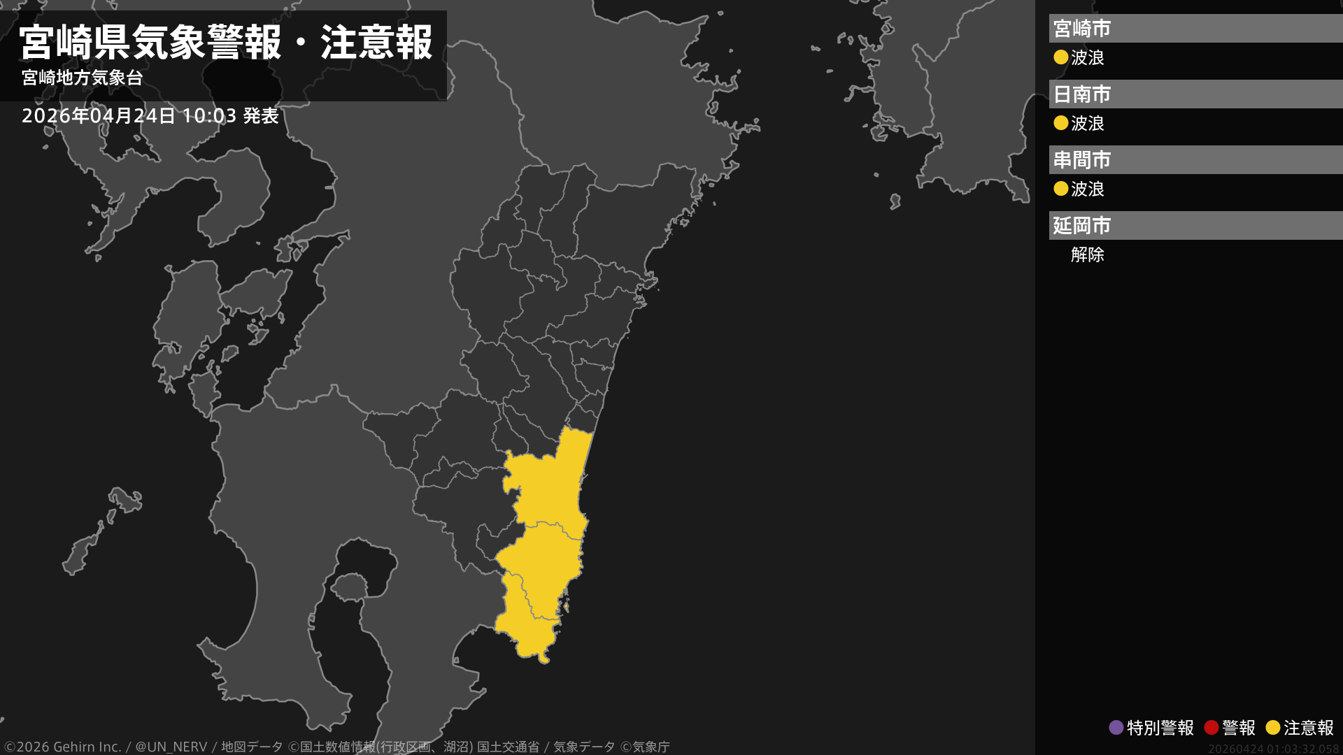 【大分県 気象警報・注意報 2026年04月23日 16:16】中部、北部、南部では、24日昼前まで強風や高波に注意してください。#気象警報注意報 #大分県