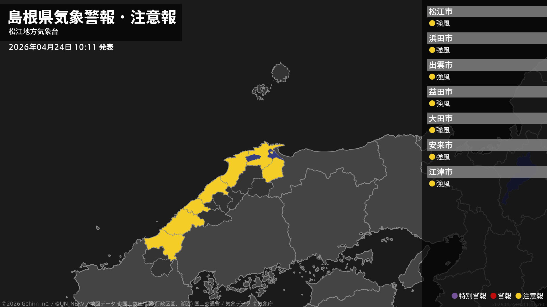 【島根県 気象警報・注意報 2026年04月23日 19:21】注意報を解除します。#気象警報注意報 #島根県