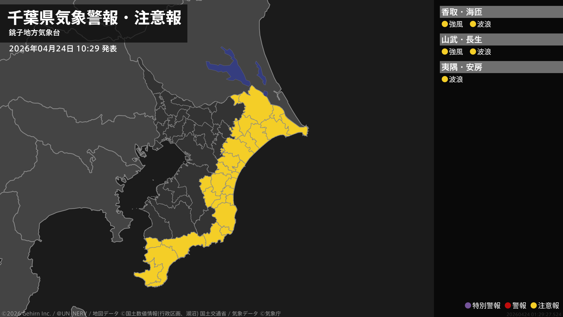【千葉県 気象警報・注意報 2026年04月23日 16:11】千葉県では、強風や高波に注意してください。#気象警報注意報 #千葉県
