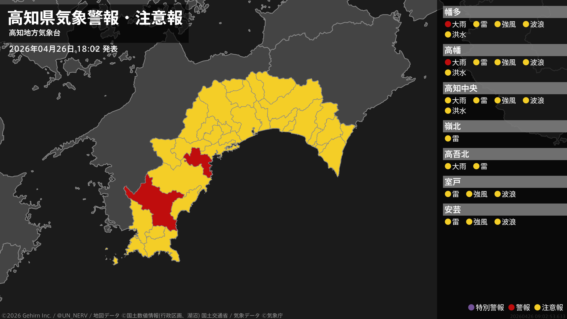 【東京都 気象警報・注意報 2026年04月26日 10:13】伊豆諸島北部、伊豆諸島南部では、26日夕方まで高波に注意してください。#気象警報注意報 #東京都