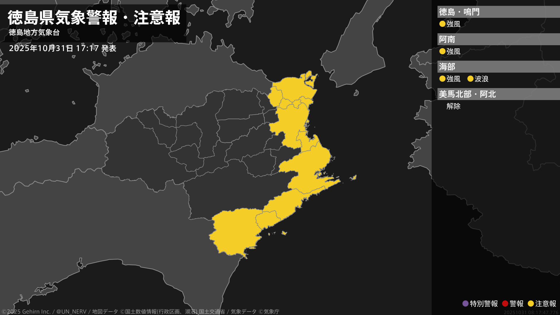 【暴風と高波及び大雨に関する全般気象情報 2025年10月31日 16:57】