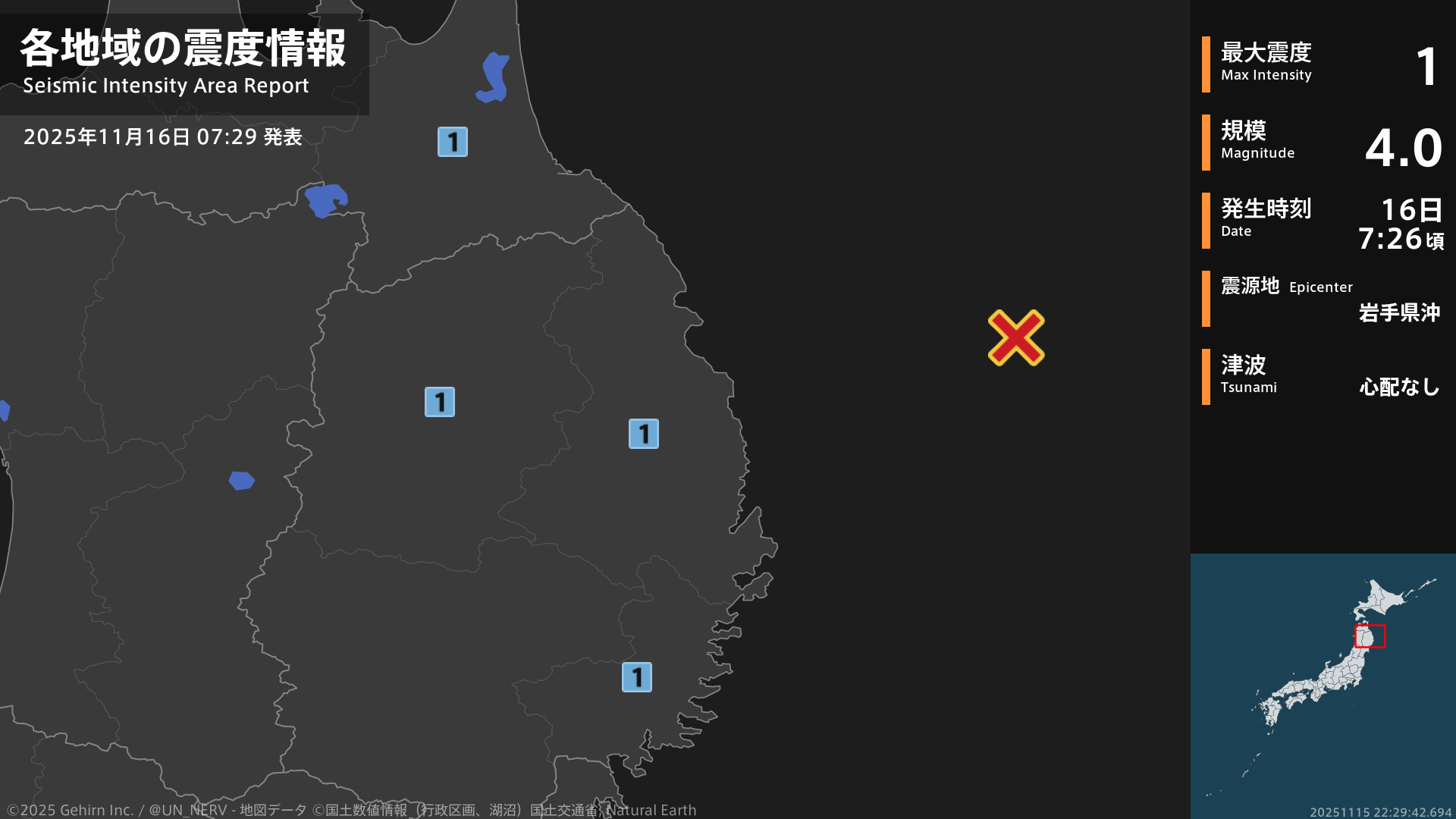 【地震情報 2025年11月16日】