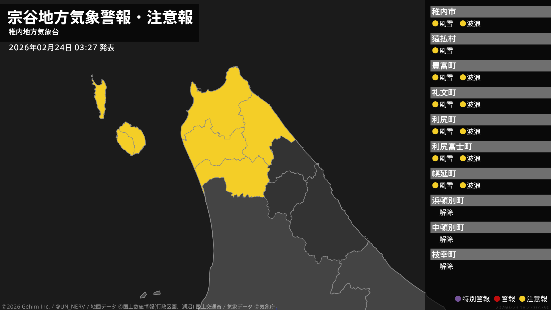 【宗谷地方 気象警報・注意報 2026年02月24日 03:27】