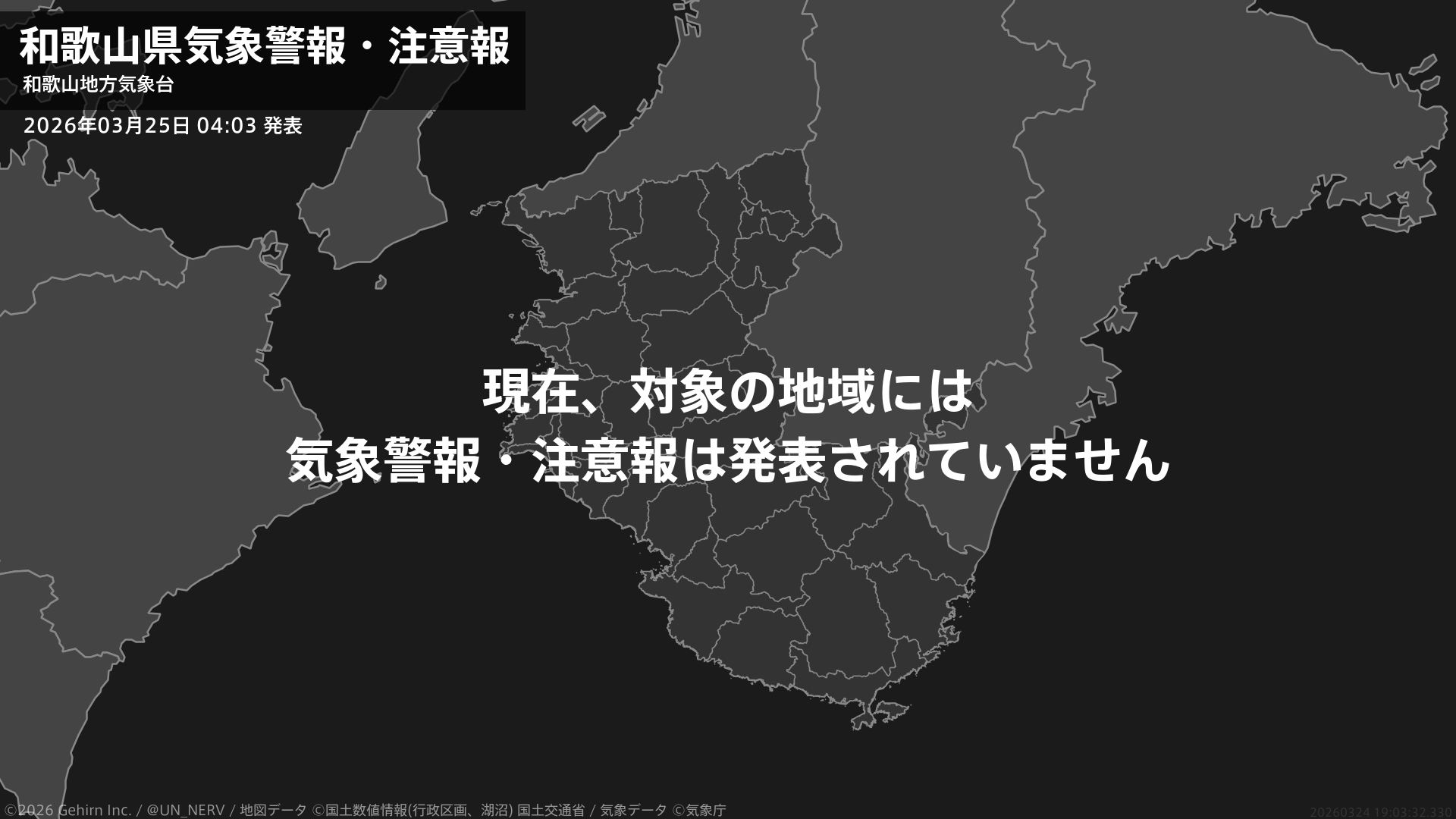 【和歌山県 気象警報・注意報 2026年03月25日 04:03】注意報を解除します。#気象警報注意報 #和歌山県