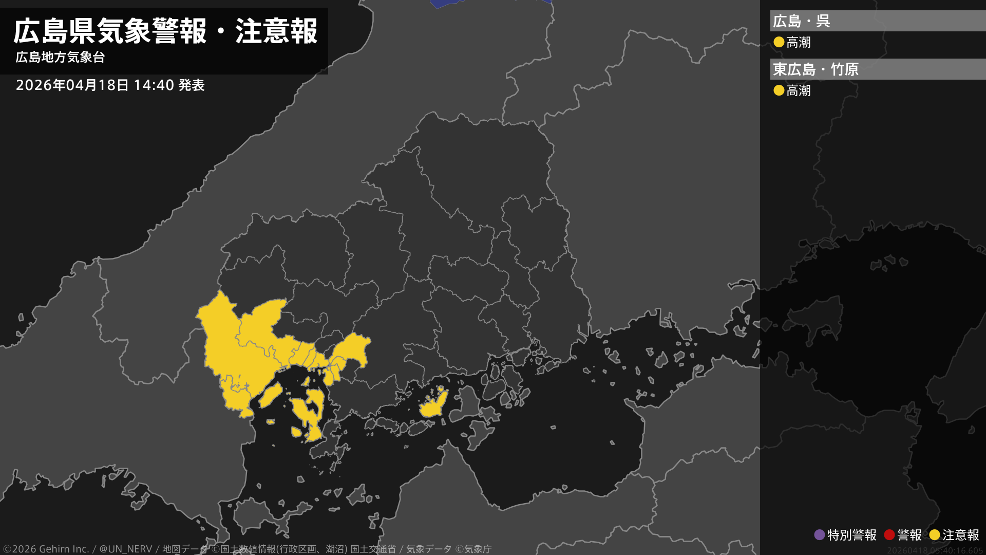 【広島県 気象警報・注意報 2026年04月18日 14:40】