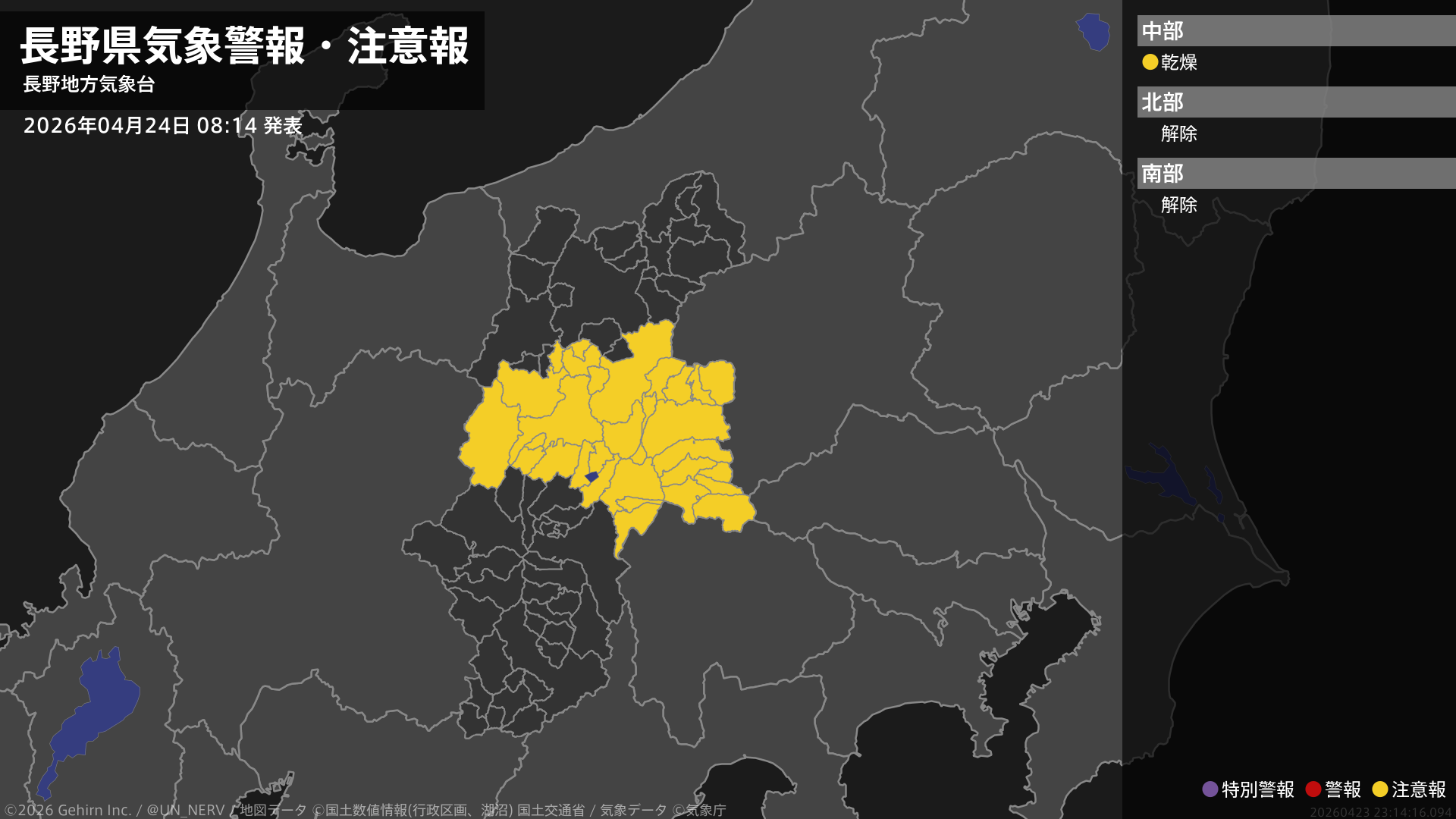 【長野県 気象警報・注意報 2026年04月24日 08:14】