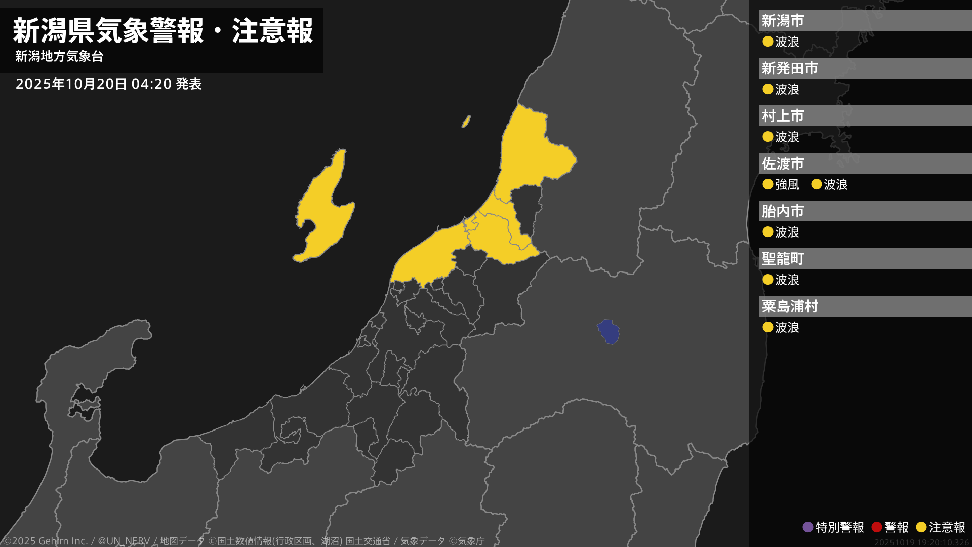 【新潟県 気象警報・注意報 2025年10月20日 04:20】
