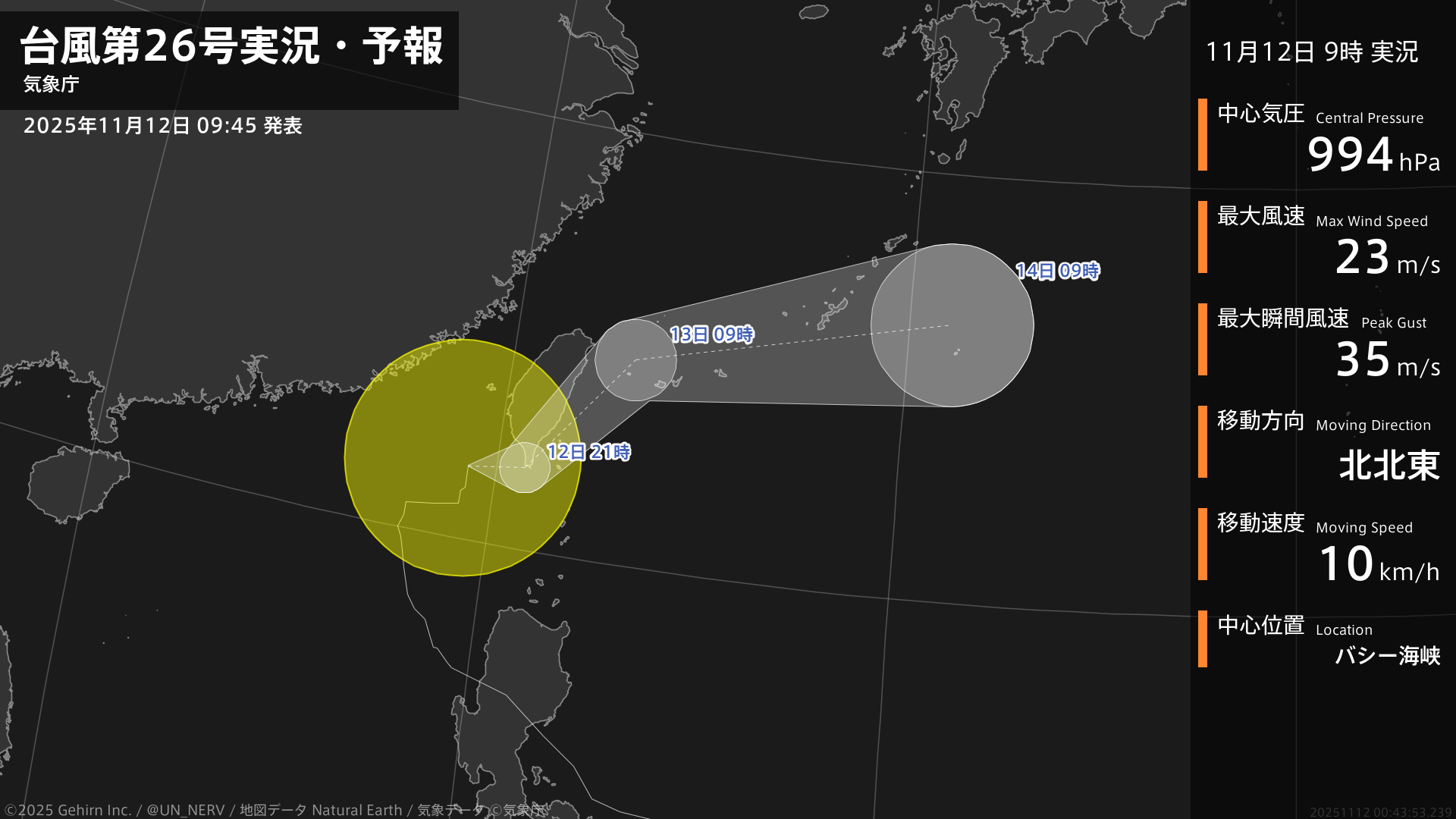 【台風第26号実況・予報 2025年11月12日 09:43】