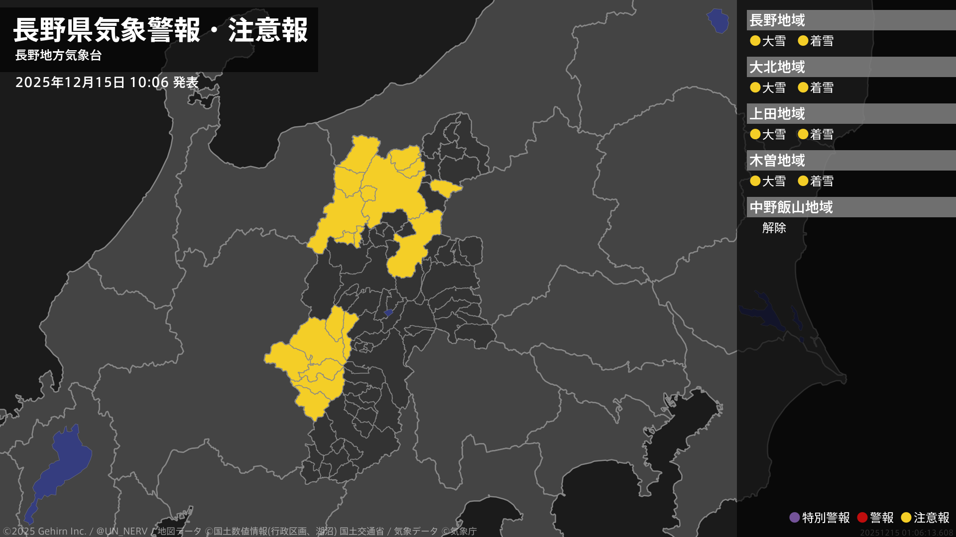 【長野県 気象警報・注意報 2025年12月15日 10:06】