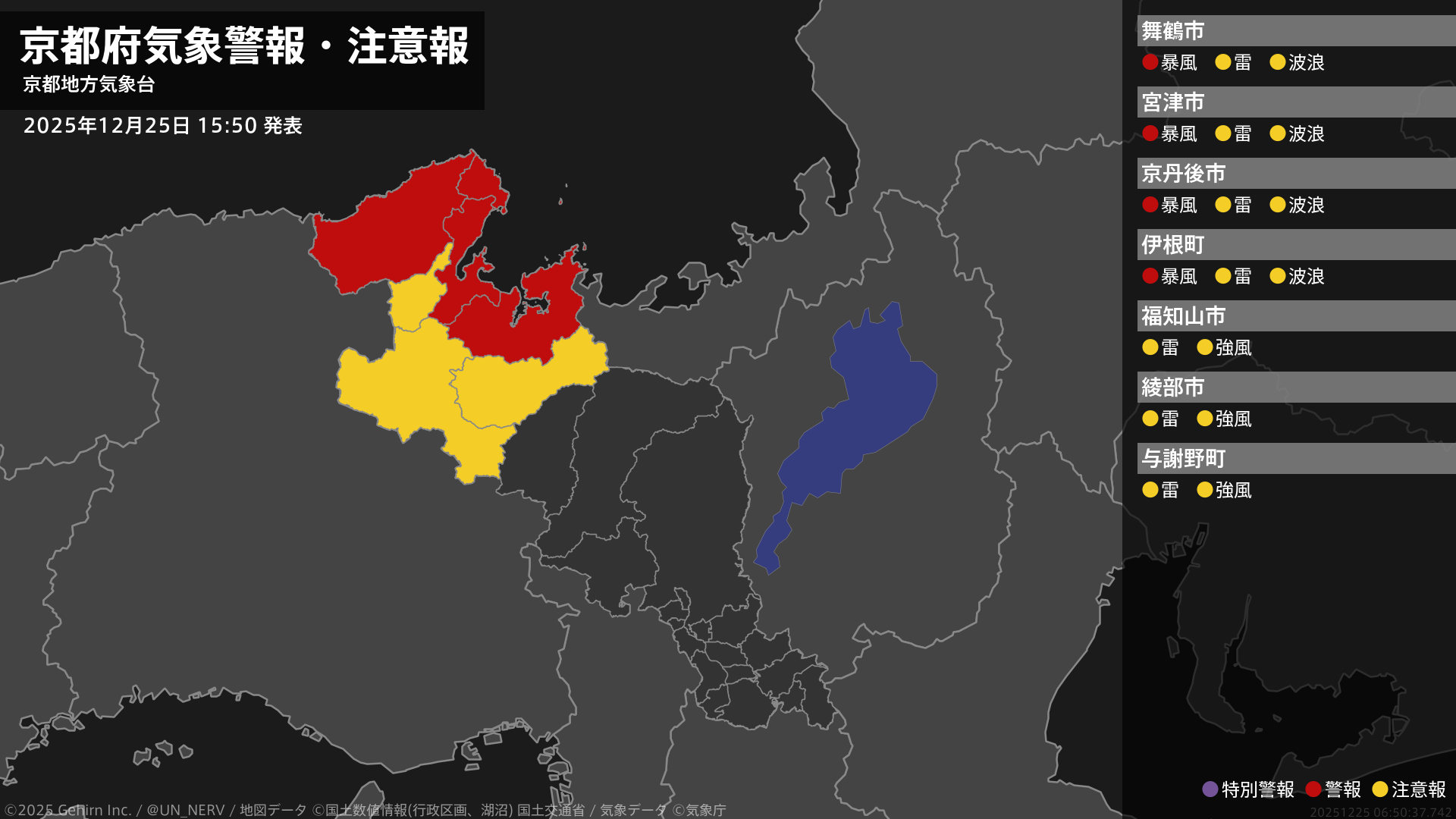 【京都府 気象警報・注意報 2025年12月25日 15:50】