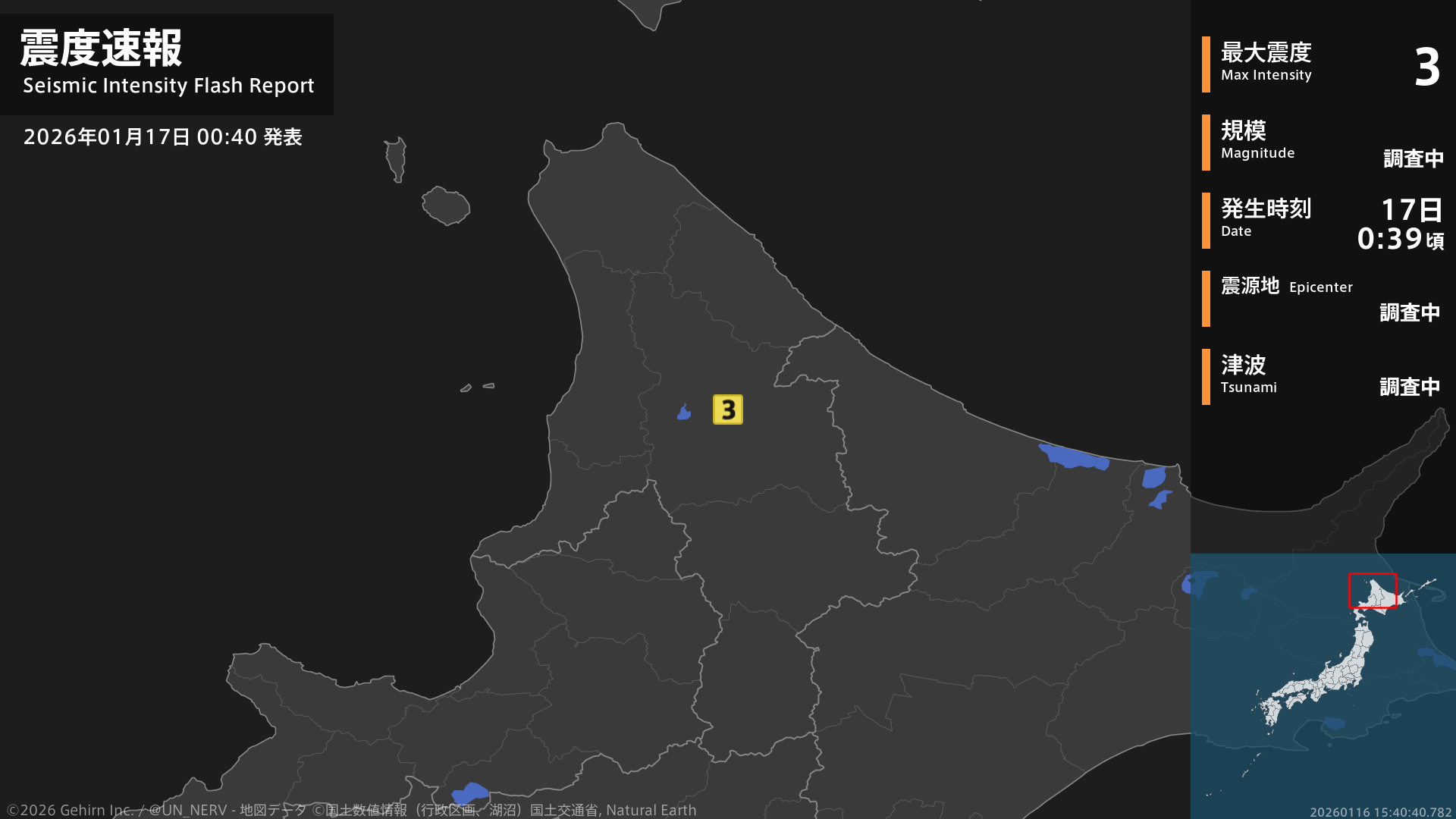 【緊急地震速報 第3報 2026年1月17日】