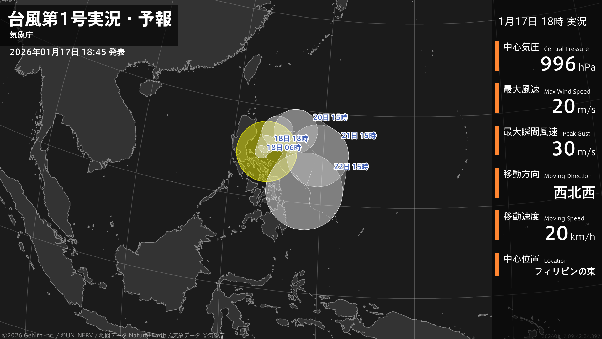 【台風第1号実況・予報 2026年01月17日 18:42】