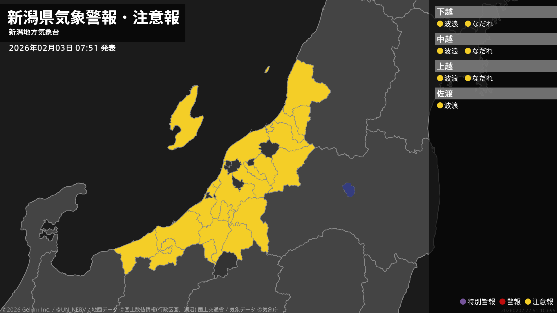【新潟県 気象警報・注意報 2026年02月03日 07:51】