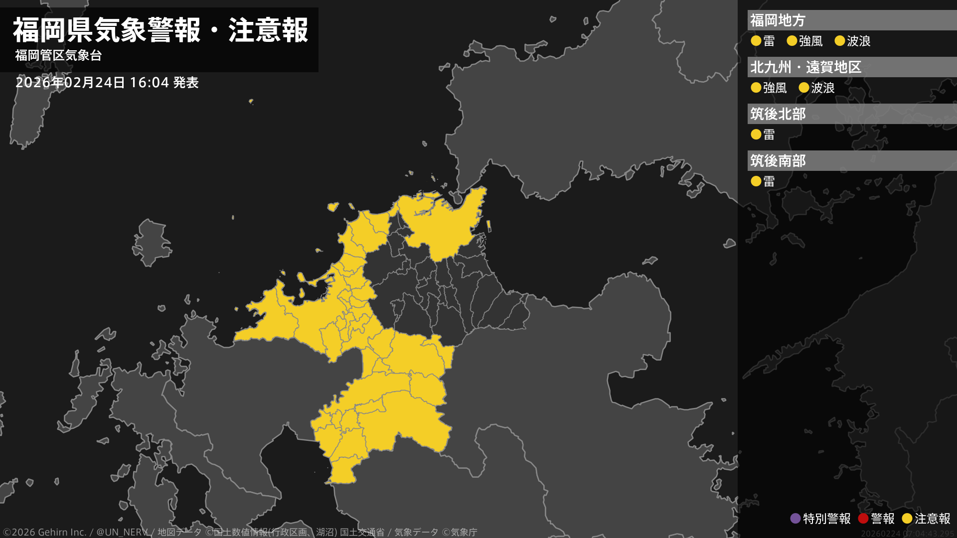 【福岡県 気象警報・注意報 2026年02月24日 16:04】