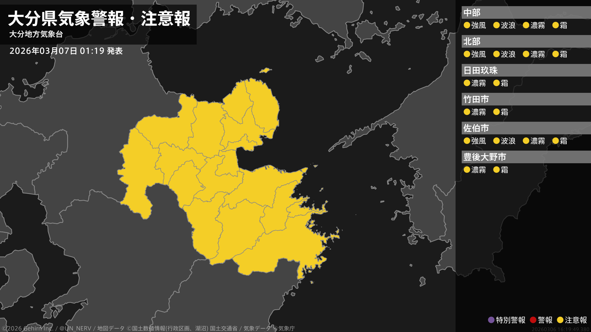 【大分県 気象警報・注意報 2026年03月07日 01:19】
