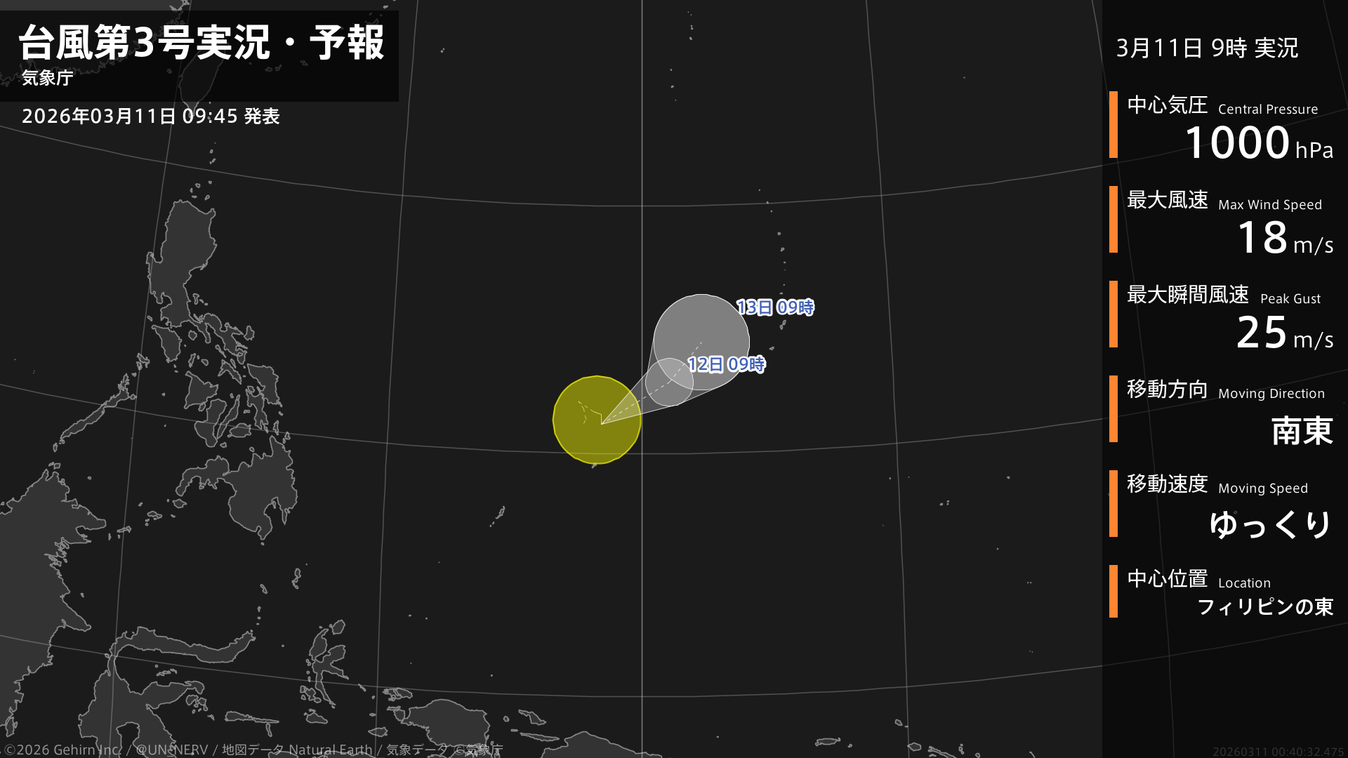 【台風第3号実況・予報 2026年03月11日 09:40】