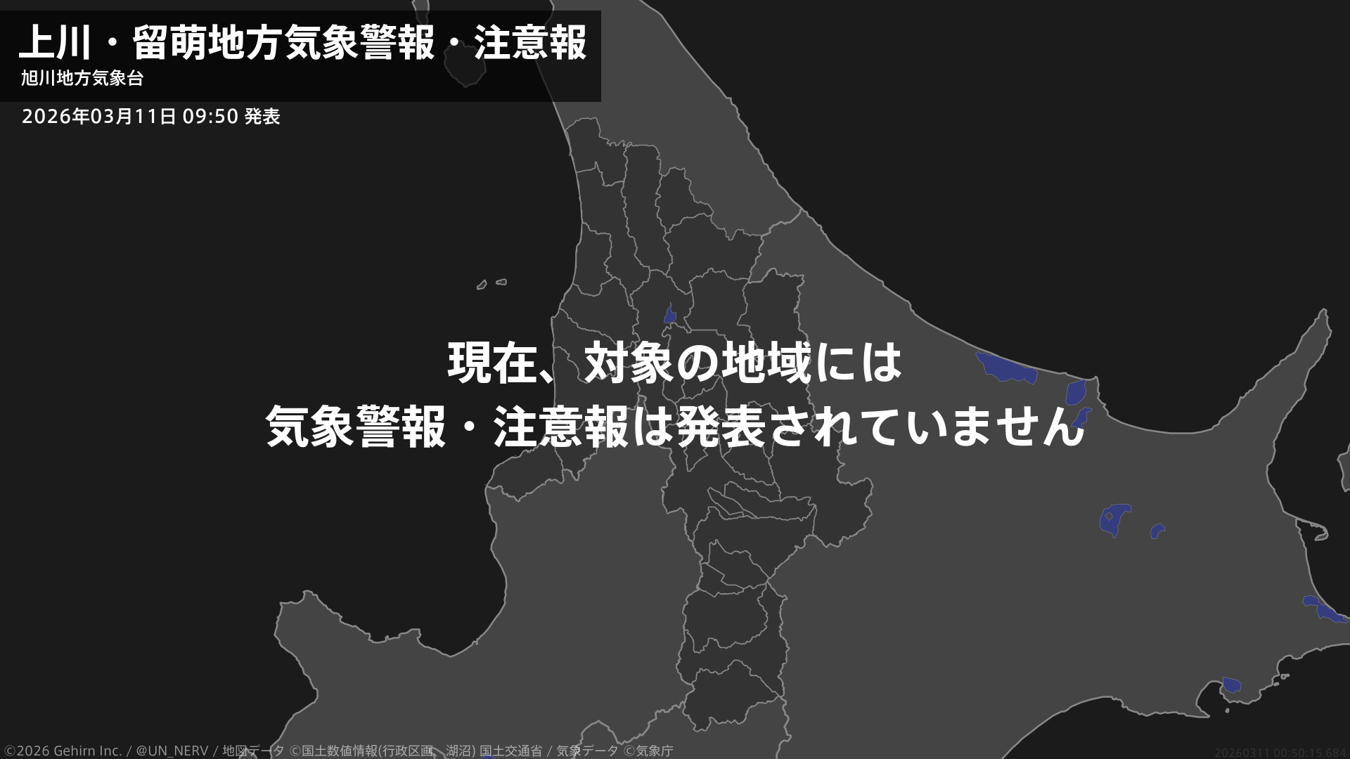 【上川・留萌地方 気象警報・注意報 2026年03月11日 09:50】