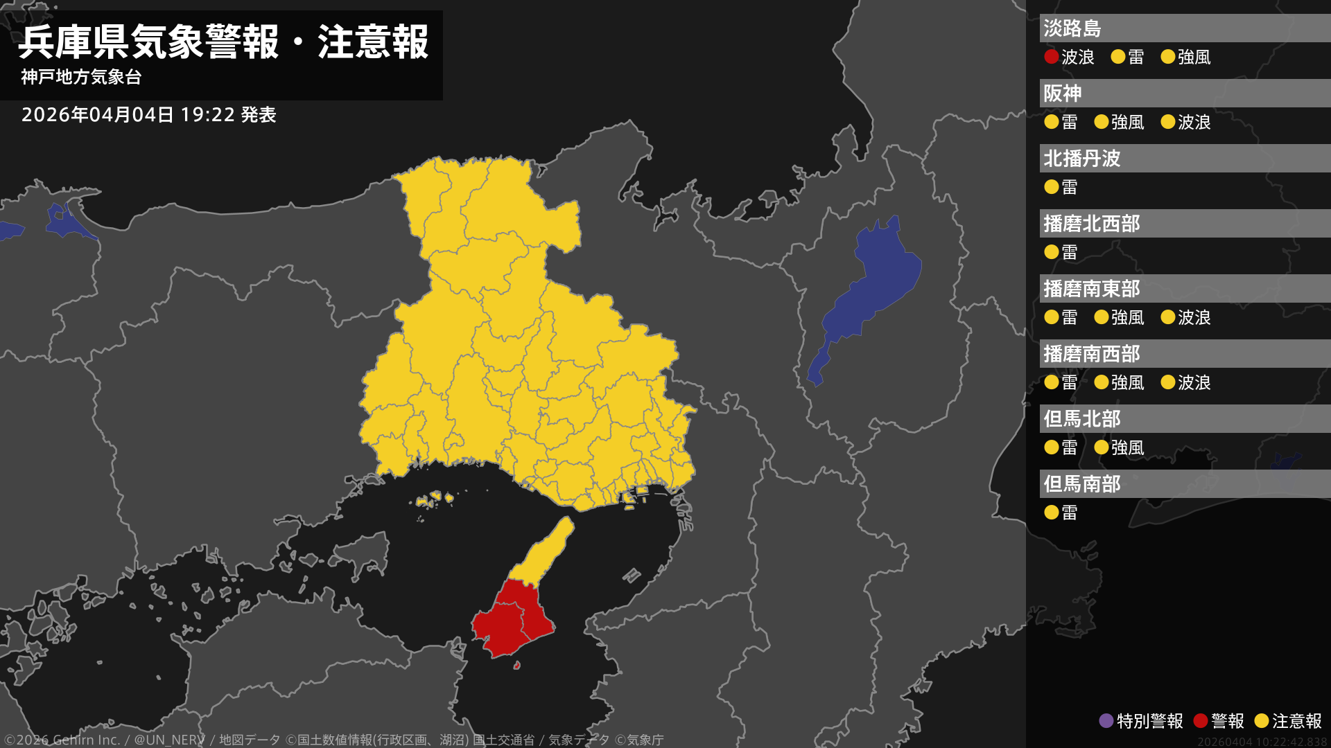 【兵庫県 気象警報・注意報 2026年04月04日 19:22】