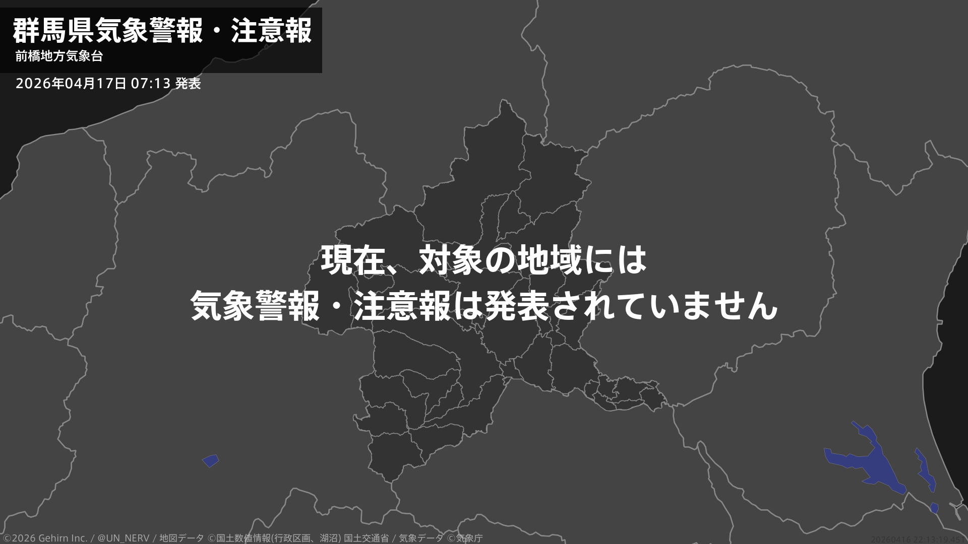 【群馬県 気象警報・注意報 2026年04月17日 07:13】注意報を解除します。#気象警報注意報 #群馬県