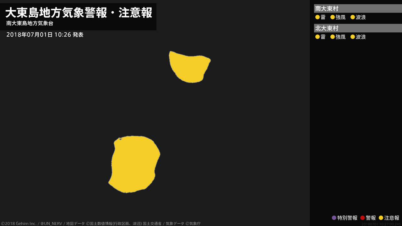 【大東島地方 気象警報・注意報 2018年07月01日 10:27】