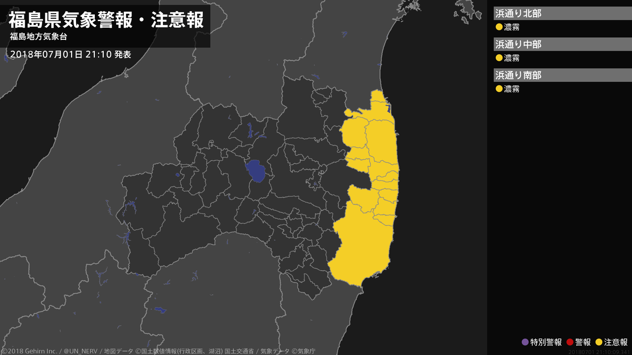 【福島県 気象警報・注意報 2018年07月01日 21:10】