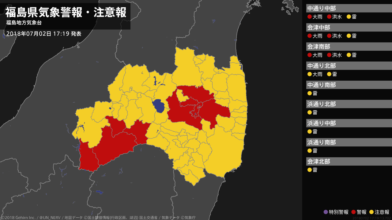 【福島 檜枝岐村付近 1時間に約100ミリの猛烈な雨】