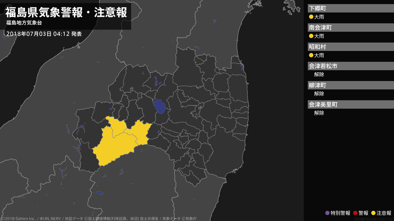 【福島県 気象警報・注意報 2018年07月03日 04:12】