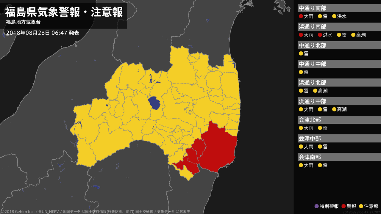 【福島県 気象警報・注意報 2018年08月28日 06:47】