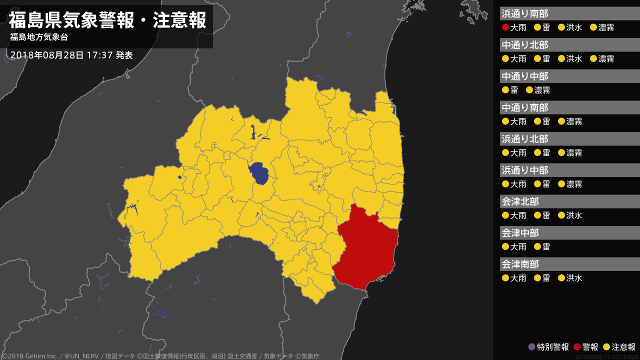 【福島県 気象警報・注意報 2018年08月28日 17:37】