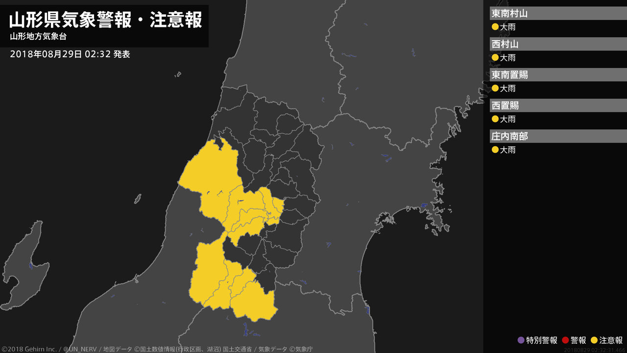 【山形県 気象警報・注意報 2018年08月29日 02:32】