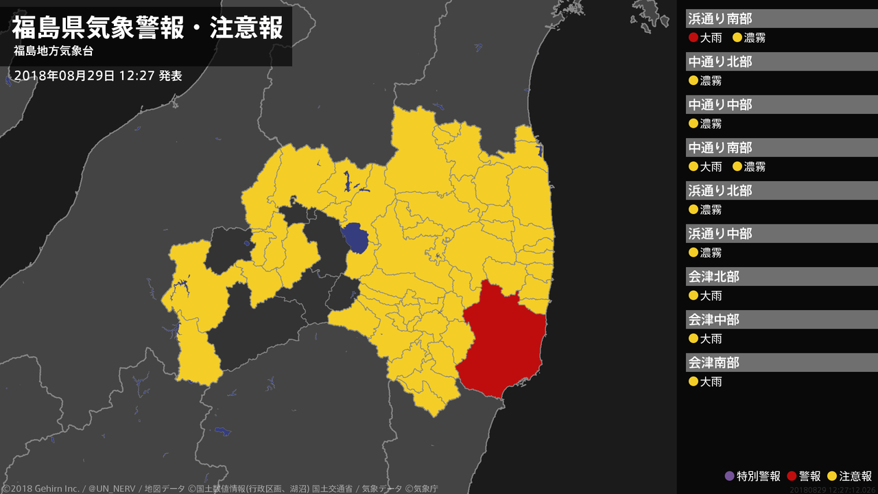【福島県 気象警報・注意報 2018年08月29日 12:27】