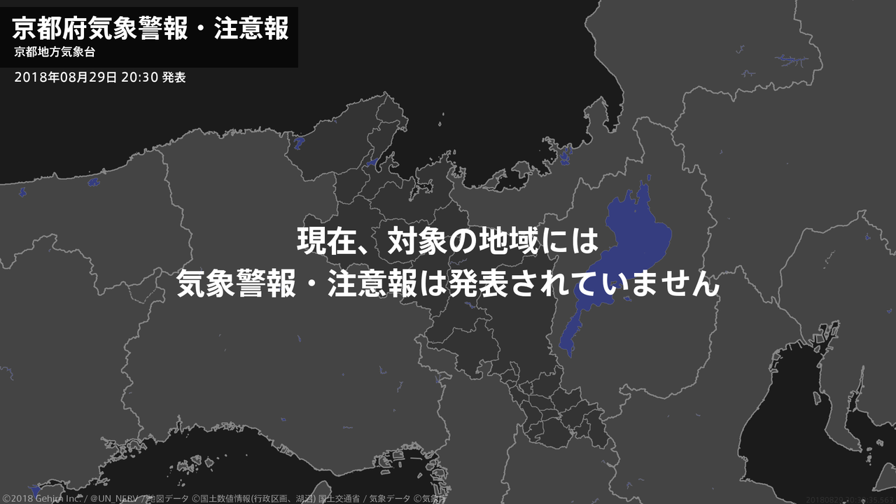 【京都府 気象警報・注意報 2018年08月29日 20:30】注意報を解除します。#気象警報注意報 #京都府