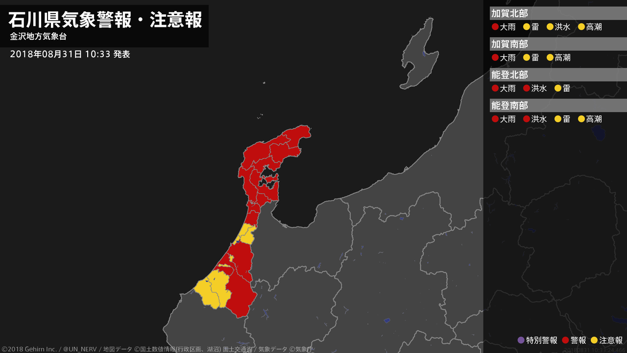 石川県によりますと、午前10時半、七尾市にある二宮川の落合橋で「氾濫危険水位」を超えました。石川県は氾濫危険情報を出して厳重な警戒を呼びかけるとともに、自治体からの避難情報などに注意するよう呼びかけています。