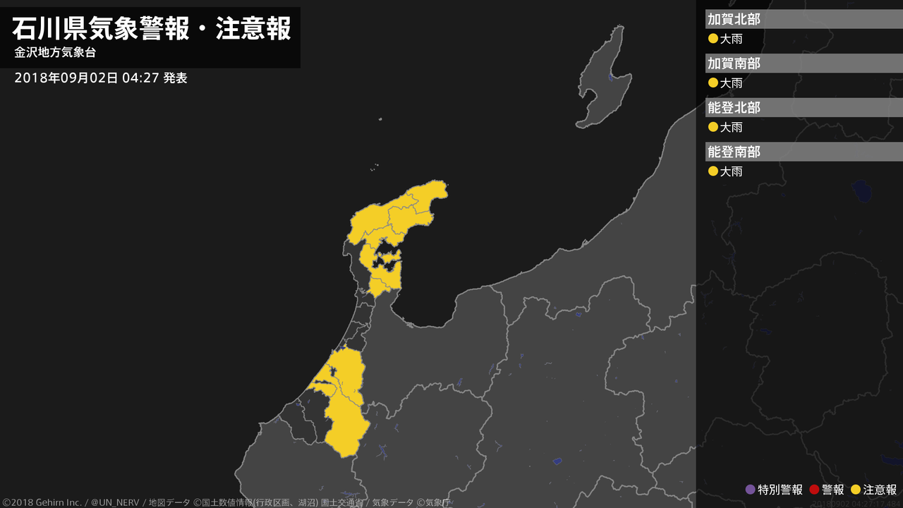 【石川県 気象警報・注意報 2018年09月02日 04:27】